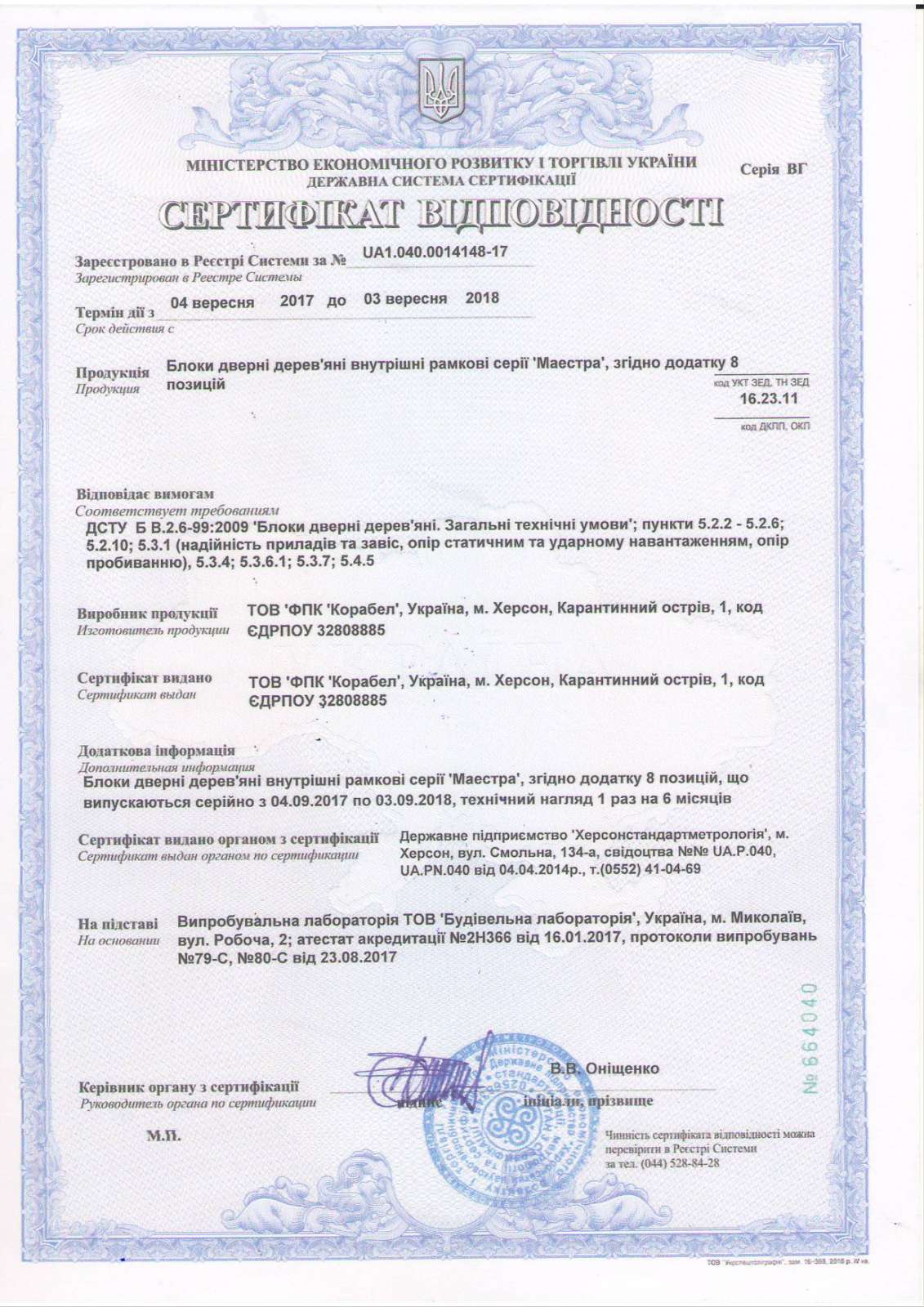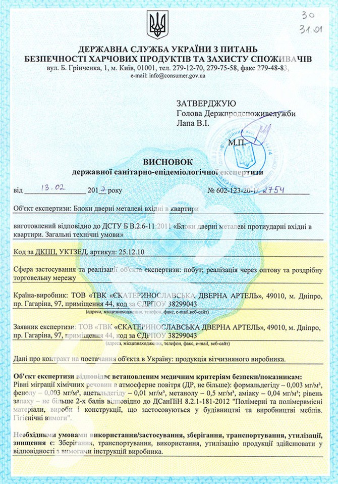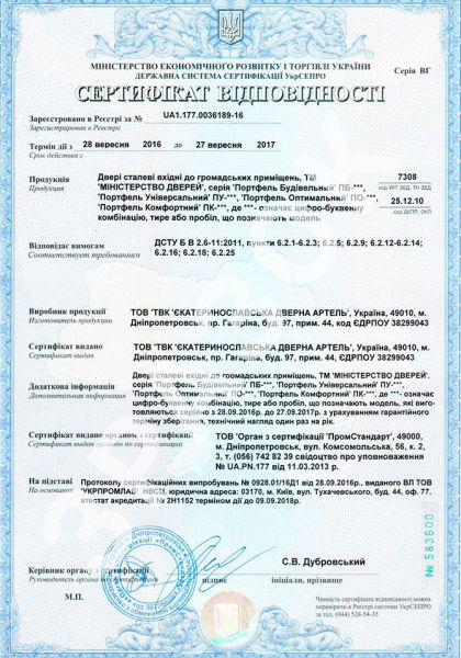 Сертификаты на входные двери