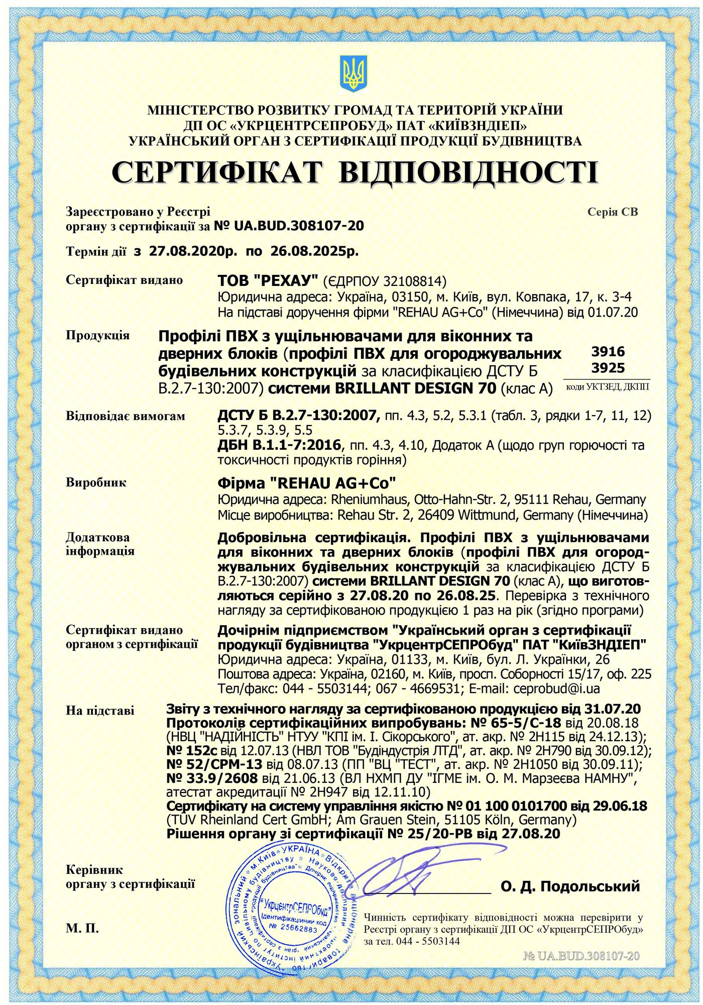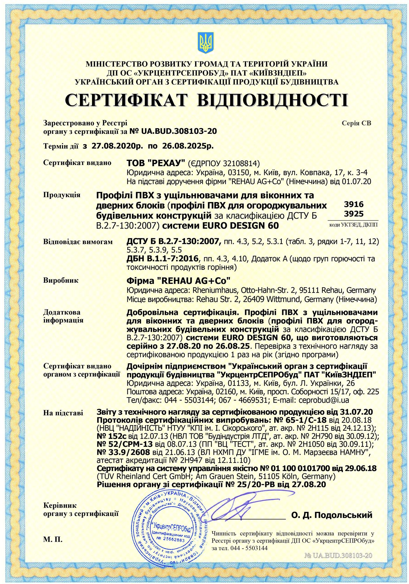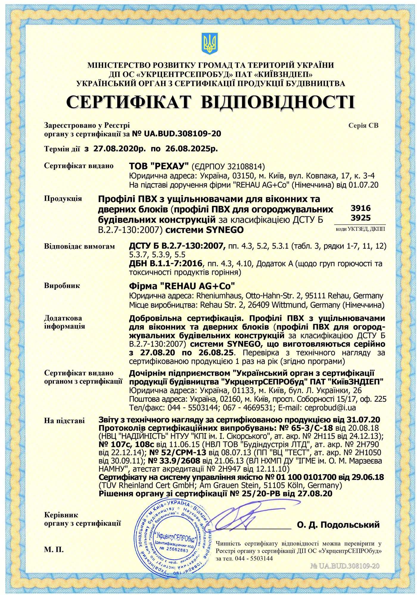 Сертификаты Rehau