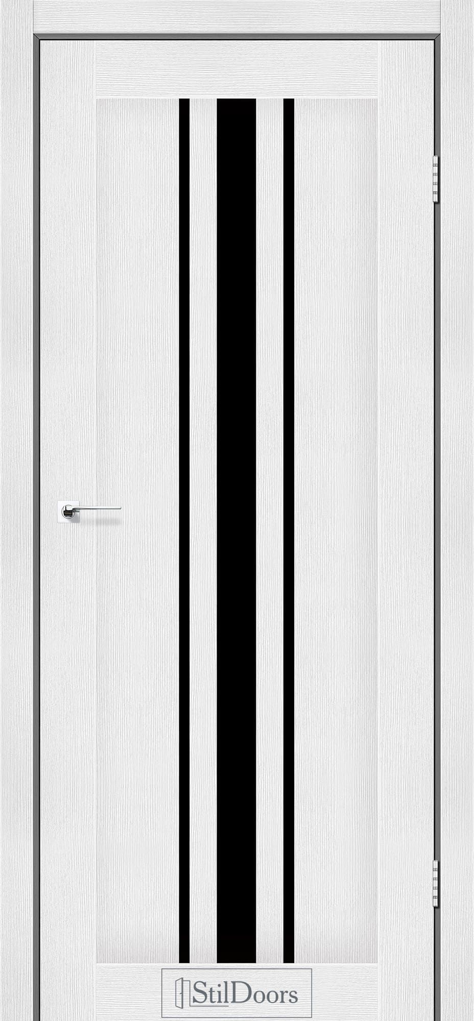 Межкомнатные двери Аризона с чорным стеклом Белое Дерево