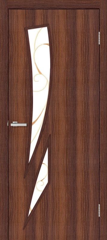 Дверь "Омис" Фиеста Экошпон (стекло сатин с контурным рисунком) Орех