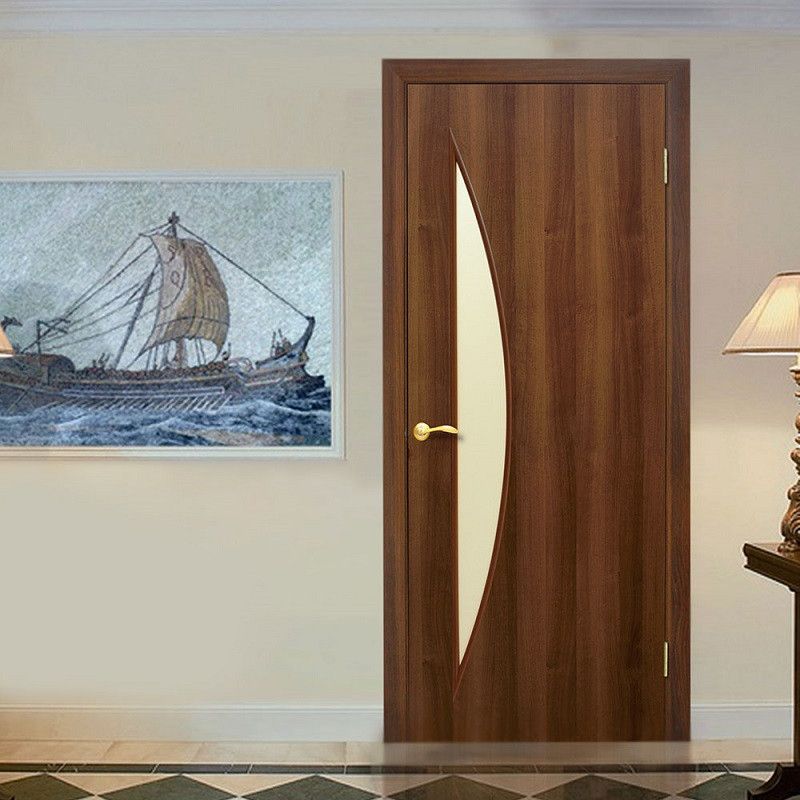 Дверь "Омис" Парус ПВХ (стекло сатин с контурным рисунком) Орех
