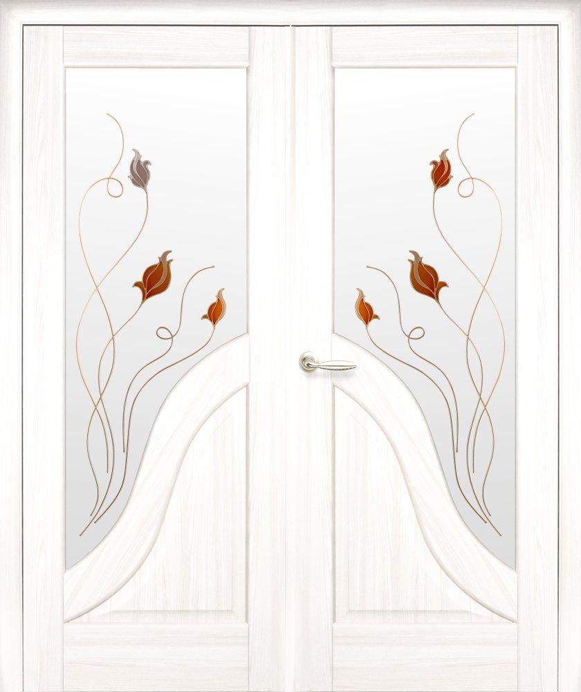 Двери двустворчатые Амата ясень делюкс со стеклом Р1 Ясень