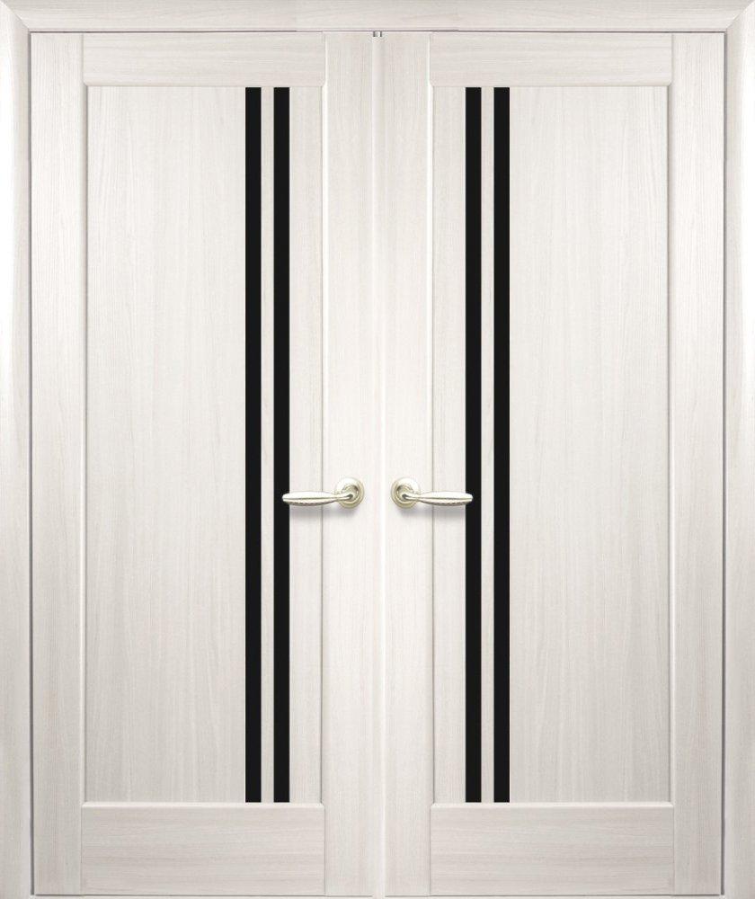 Двери двустворчатые Делла Black ясень делюкс стекло черное
