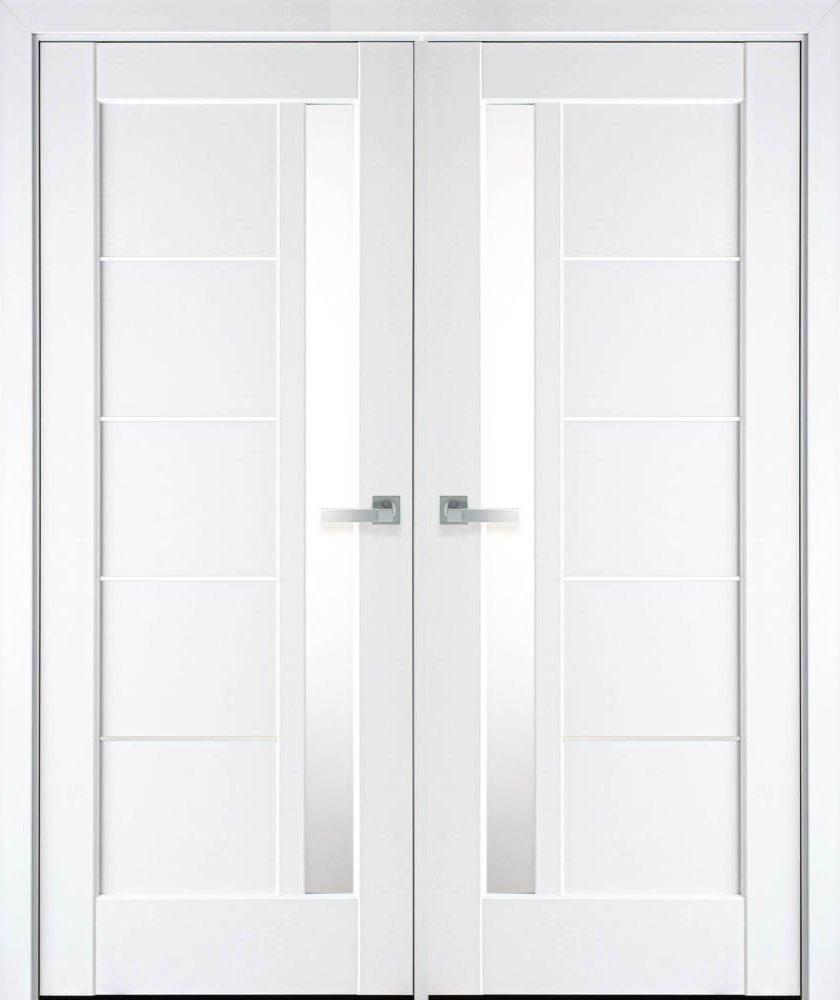 Двери двустворчатые Грета белый мат премиум стекло Сатин Белый мат