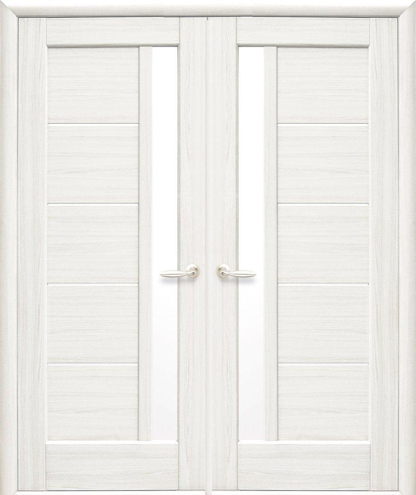Двери двустворчатые Грета ясень делюкс стекло Сатин