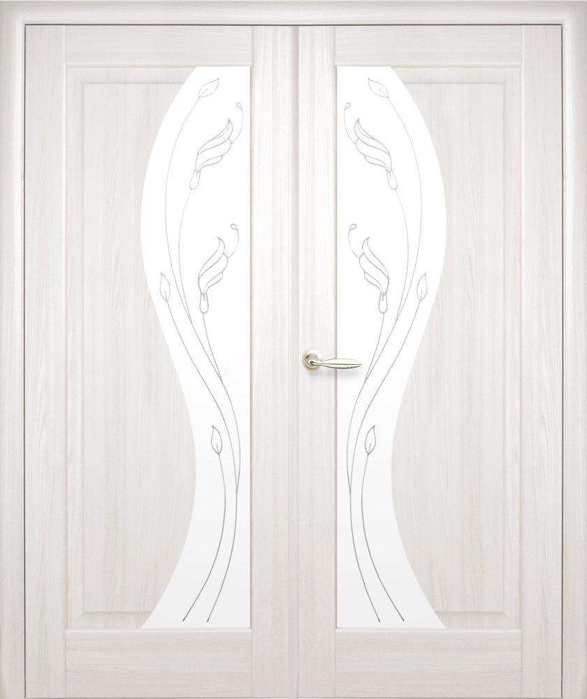 Двери двустворчатые Мира ясень делюкс стекло Сатин