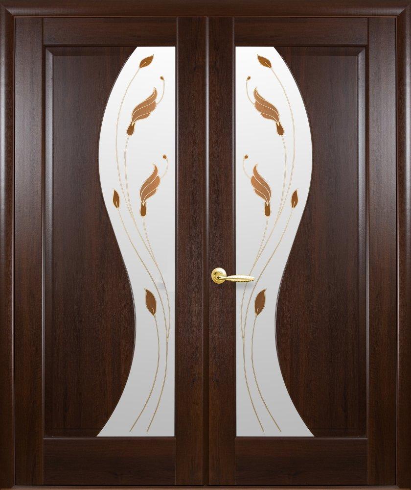 Двери двустворчатые Эскада каштан делюкс со стеклом Р1 Каштан