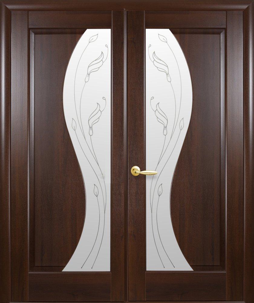 Двери двустворчатые Амата каштан делюкс со стеклом Р1