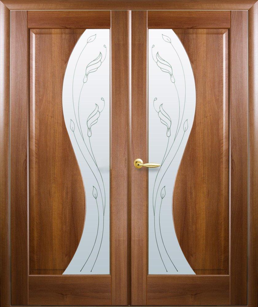 Двери двустворчатые Эскада золотая ольха делюкс со стеклом Р2