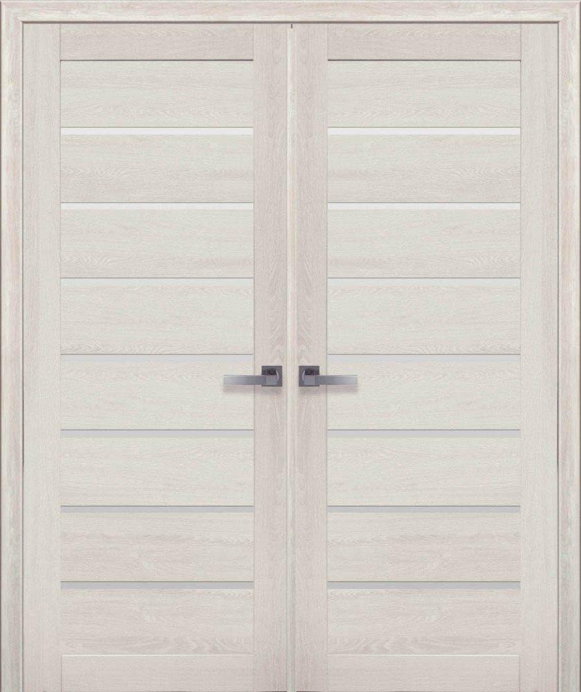 Двери двустворчатые Леона дуб молочный стекло Сатин дуб молочный