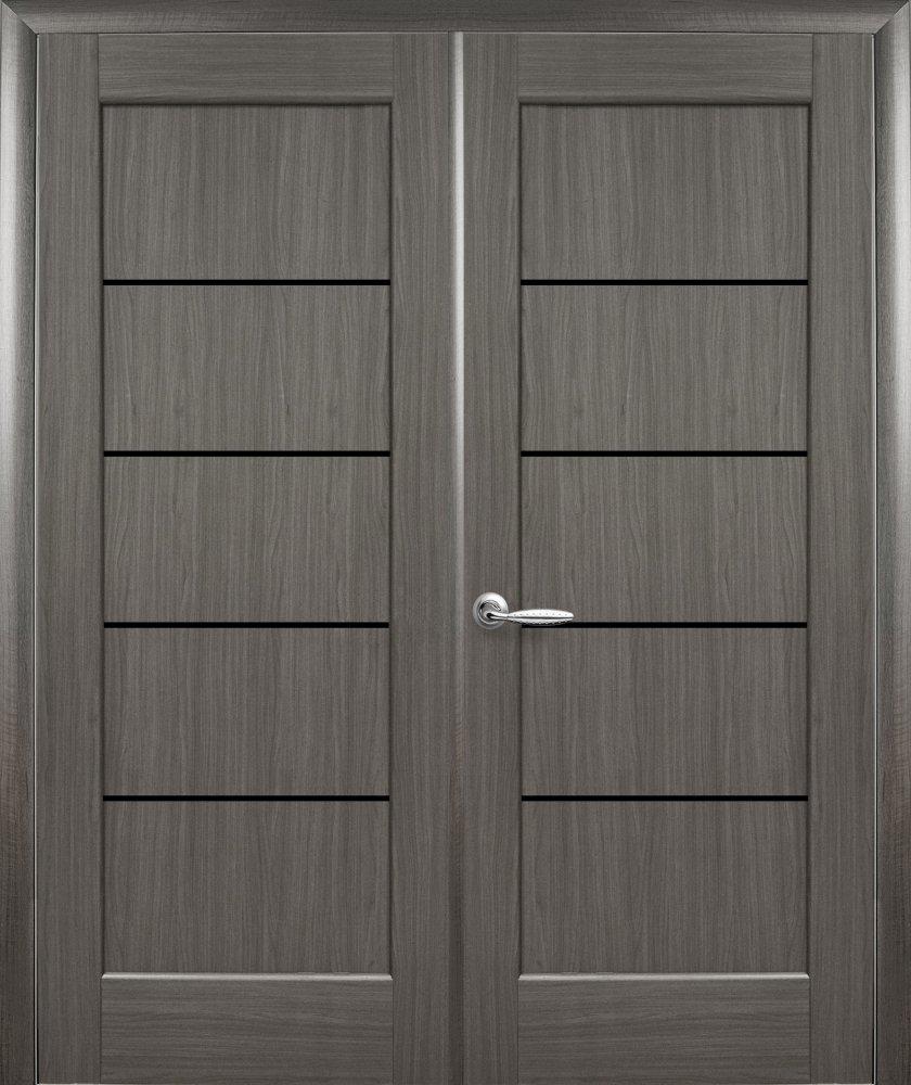 Двери двустворчатые Линнея Black грей делюкс New стекло черное