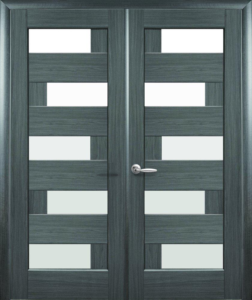 Двери двустворчатые Пиана грей делюкс New стекло Сатин