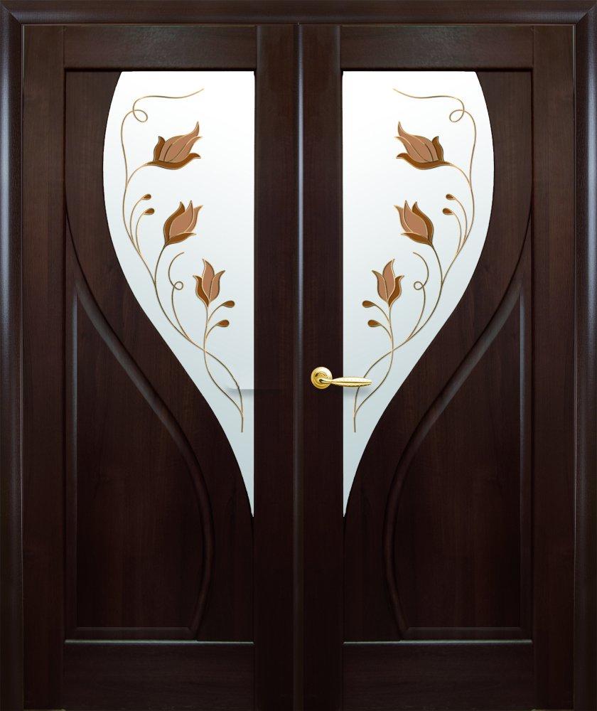 Двери двустворчатые Прима каштан делюкс со стеклом Р1 Каштан