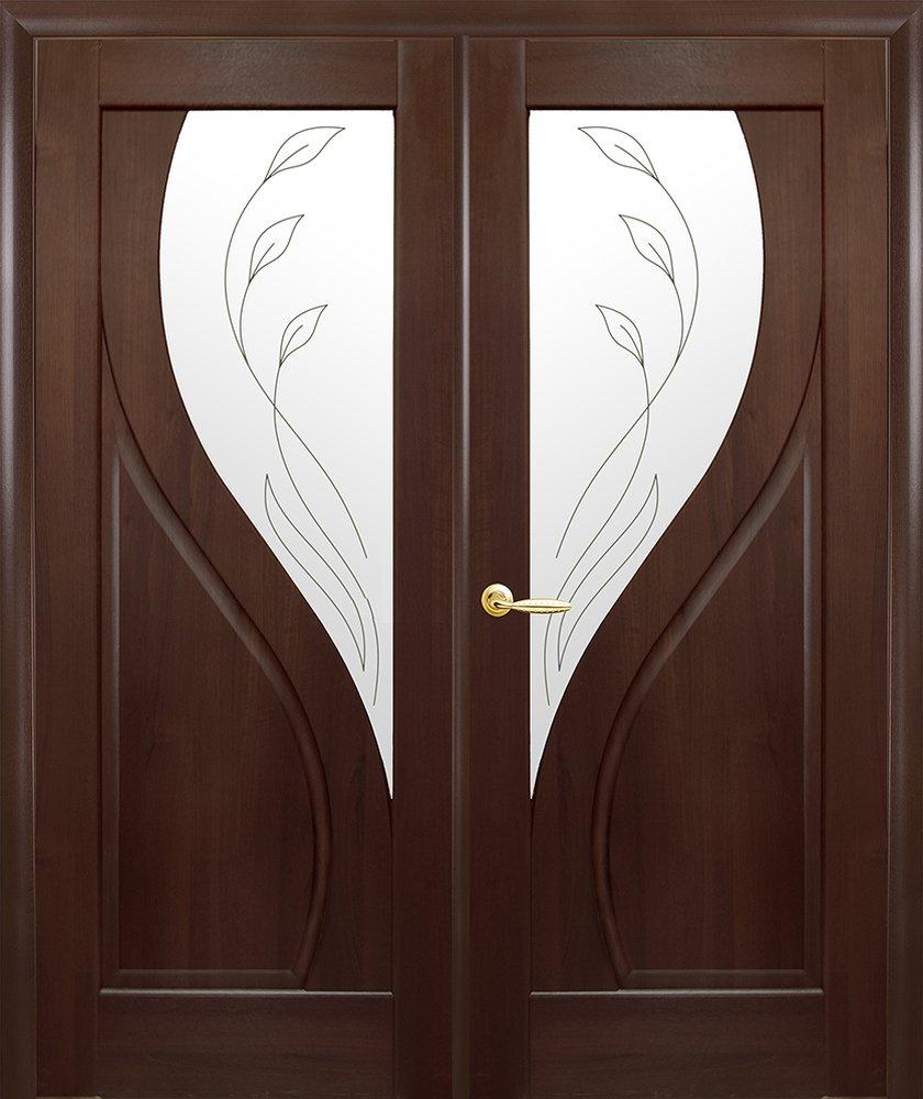 Двери двустворчатые Прима каштан делюкс со стеклом Р2 Каштан