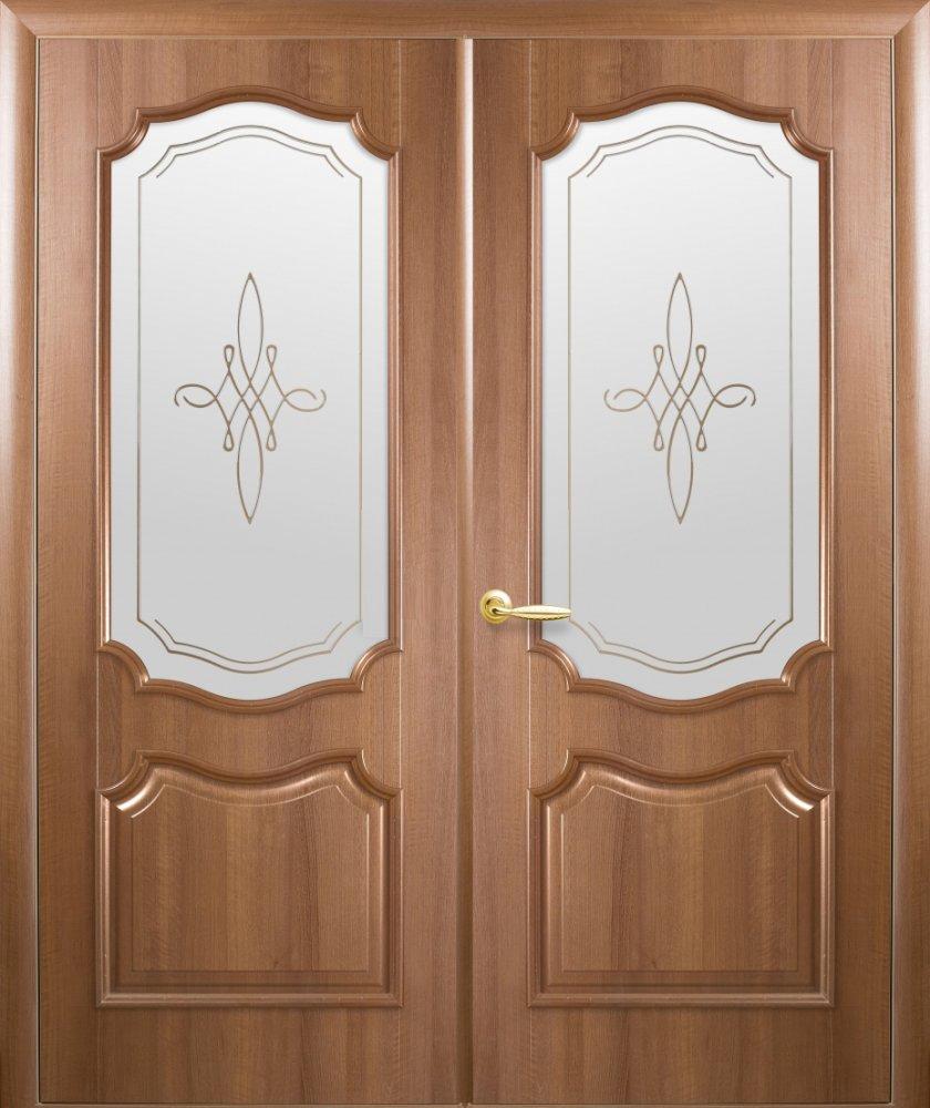 Двери двустворчатые Амата золотая ольха делюкс со стеклом Р2