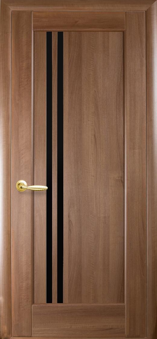 Межкомнатные двери Делла с черным стеклом Золотая ольха