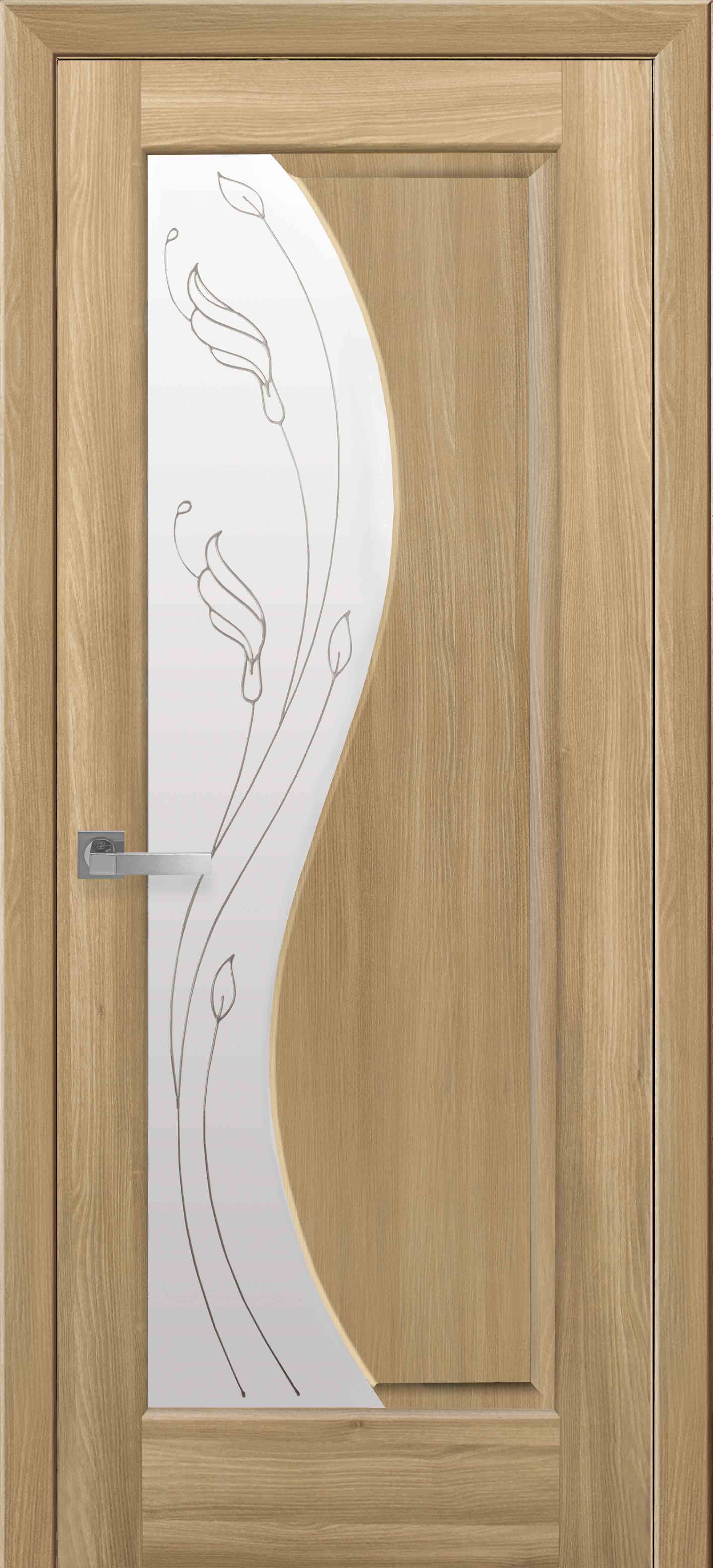 Межкомнатные двери Эскада со стеклом сатин и рисунком Р2 Золотой дуб