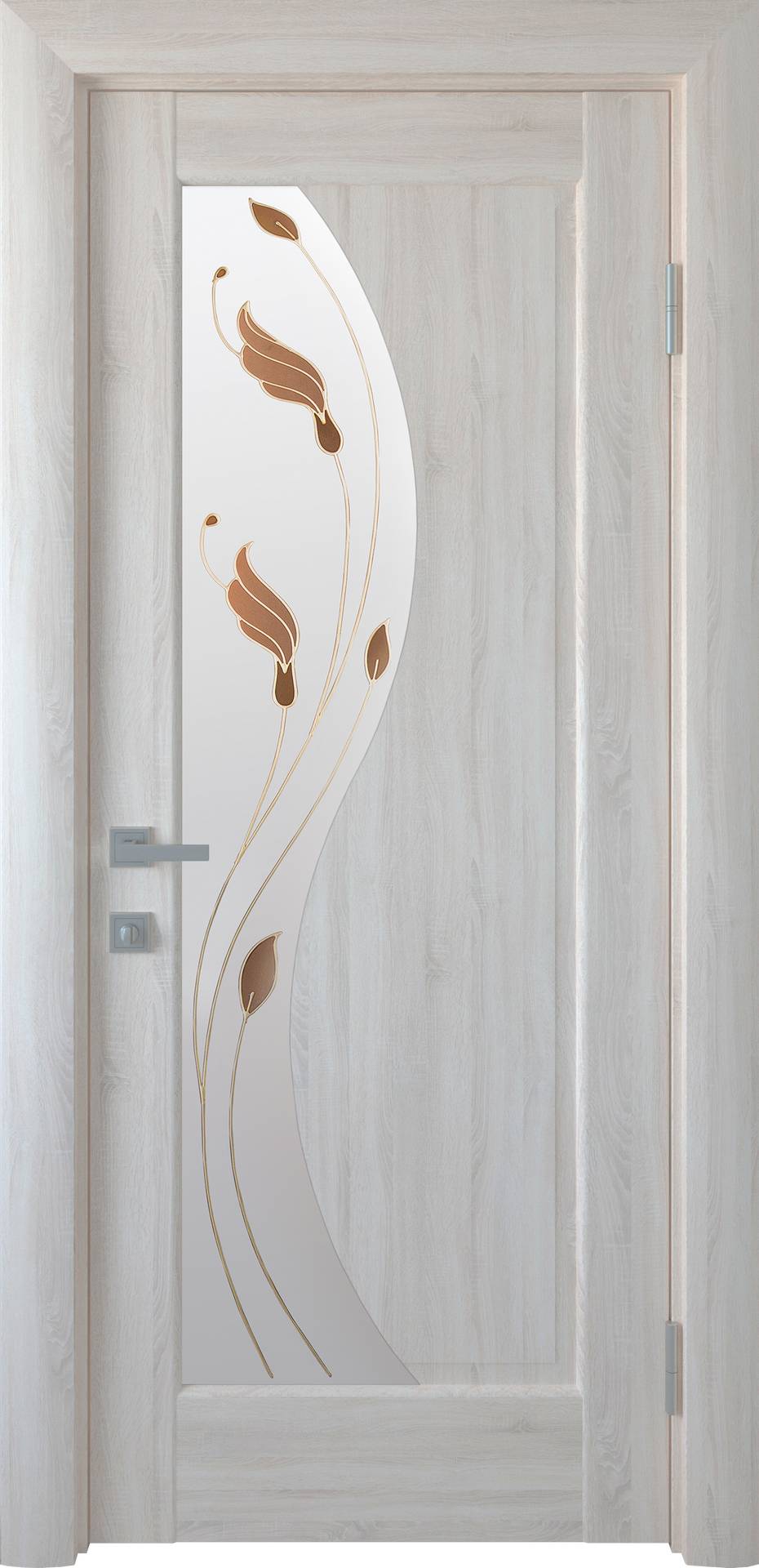 Плавная округлая линия, разделяющая межкомнатную дверь Эскада на две равные части, придает гармоничный и целостный вид всей конструкции. Одна половина может быть глухой или остекленной, также есть варианты модели с нанесенным рисунком с природным мотивом. Легкость и элегантность полотна производит впечатление сложного дизайнерского элемента, при этом выглядит уместно почти в любой квартире.