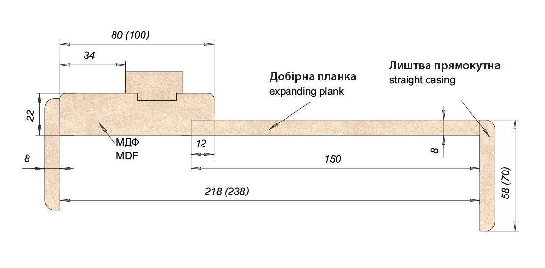Каркас двери: брус хвойных пород древесины, усиление под замок.