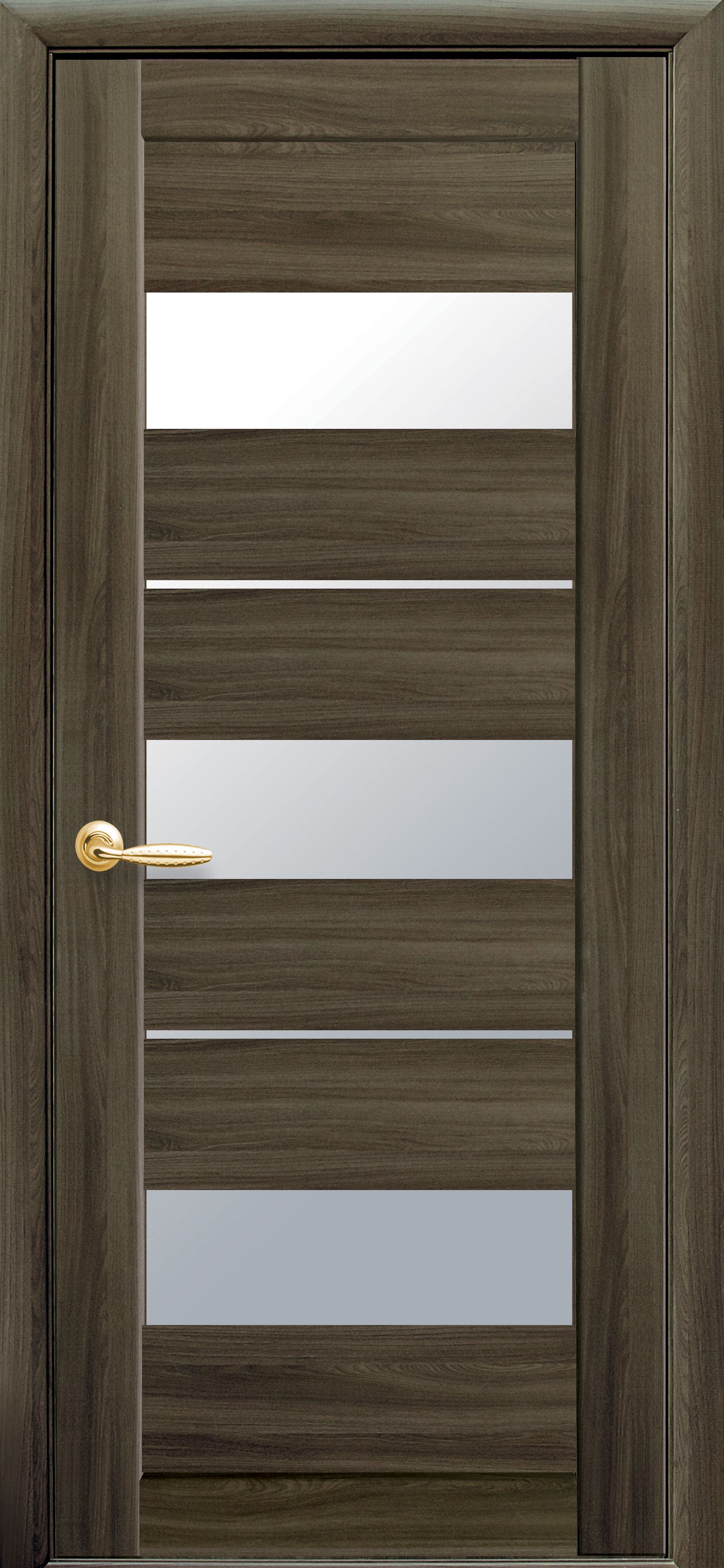 Универсальный современный дизайн двери Ліра подходит в любой интерьер в стиле лофт, техно или хай-тек. Дверное полотно идеально вписывается в офисные и жилые помещения. Тонкие полоски остекления пропускают больше света, придают конструкции оригинальный вид. Сочетание матового или черного стекла с покрытием Экошпон создает контраст между разными типами поверхностей. Такой приём часто используется в стиле хай-тек – сочетание природной структуры со стеклом или металлом.