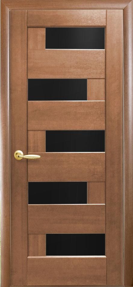 Межкомнатные двери Пальміра с черным стеклом Вільха Італійська