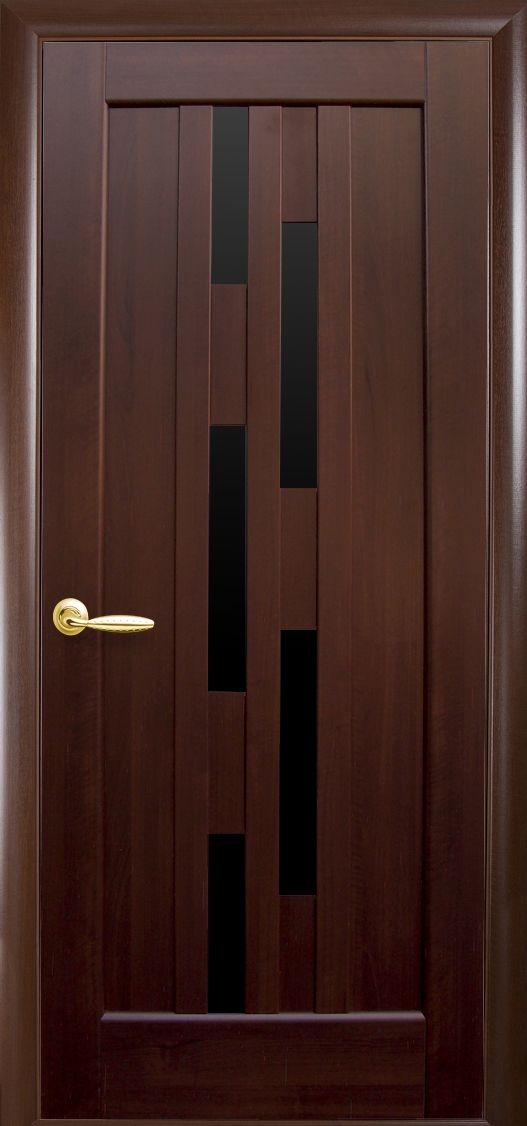 Межкомнатные двери Лаура с черным стеклом Каштан