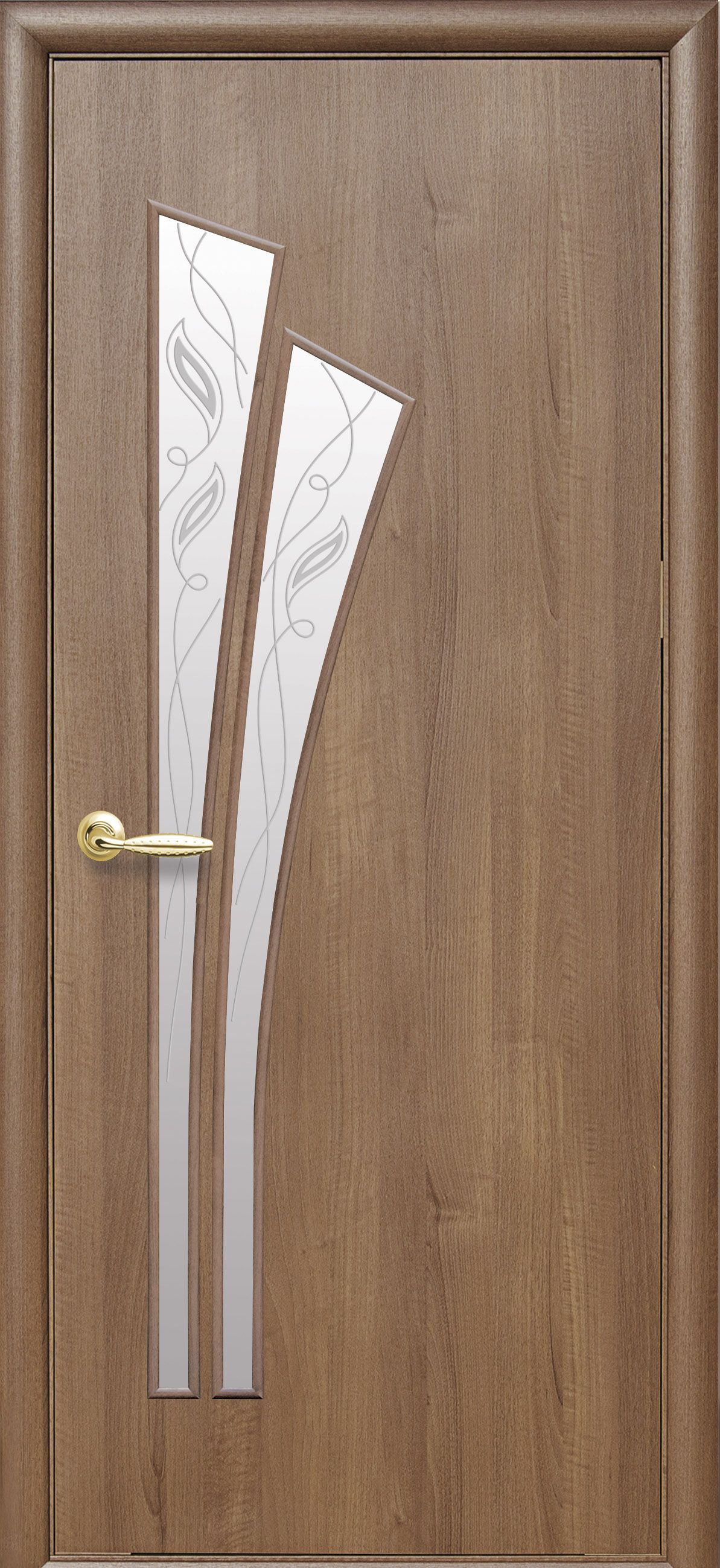 Утонченный рисунок на межкомнатной двери Лилия дополняет фигурные стекла, создавая оригинальную композицию с растительными мотивами. Такая конструкция подходит к стилям кантри, прованс и эко. Изящное небольшое остекление двери пропускает свет, но в то же время создает надежную перегородку для комнаты. Рисунок на стеклянных элементах бывает цветной или прозрачный, что расширяет возможности для выбора одного типа полотна в разные помещения.