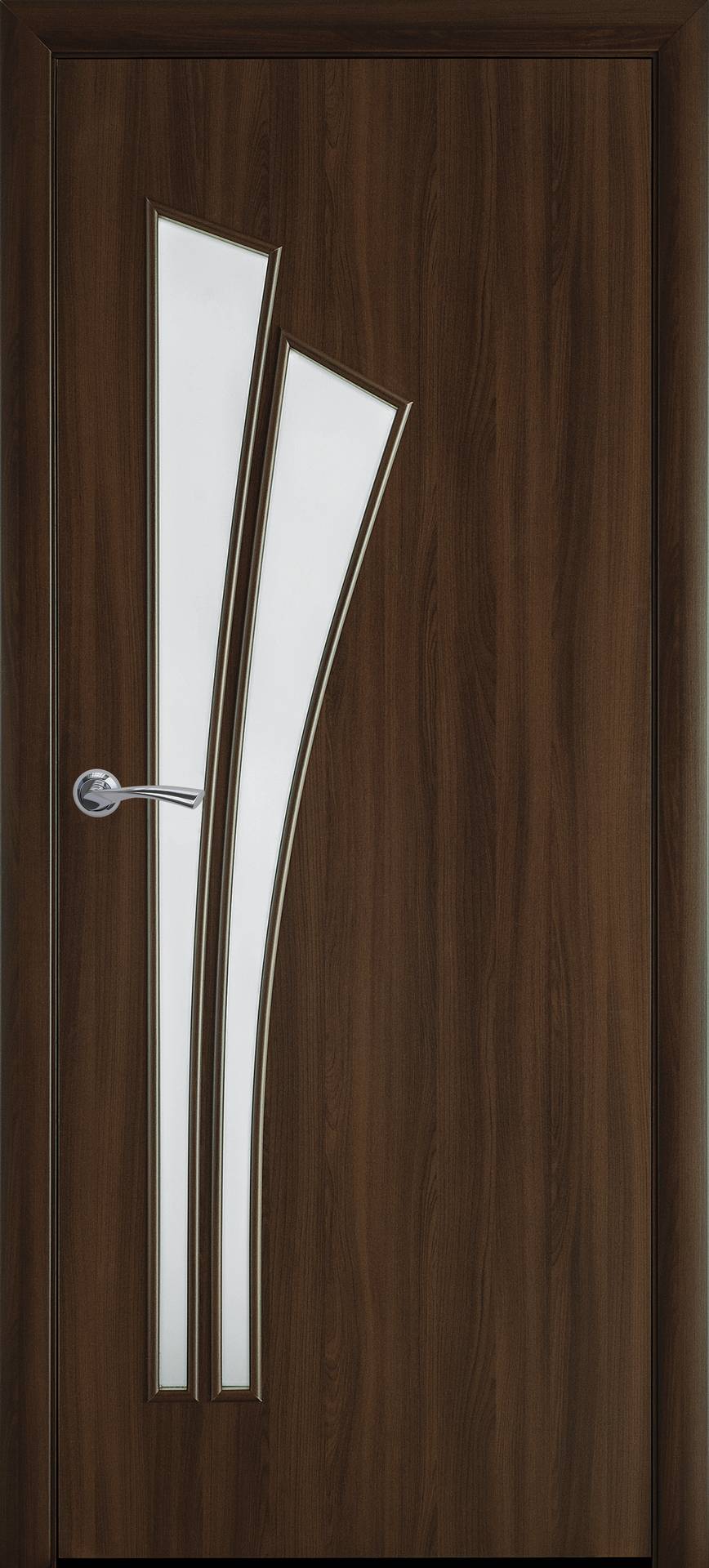 Утонченный рисунок на межкомнатной двери Лилия дополняет фигурные стекла, создавая оригинальную композицию с растительными мотивами. Такая конструкция подходит к стилям кантри, прованс и эко. Изящное небольшое остекление двери пропускает свет, но в то же время создает надежную перегородку для комнаты. Рисунок на стеклянных элементах бывает цветной или прозрачный, что расширяет возможности для выбора одного типа полотна в разные помещения.