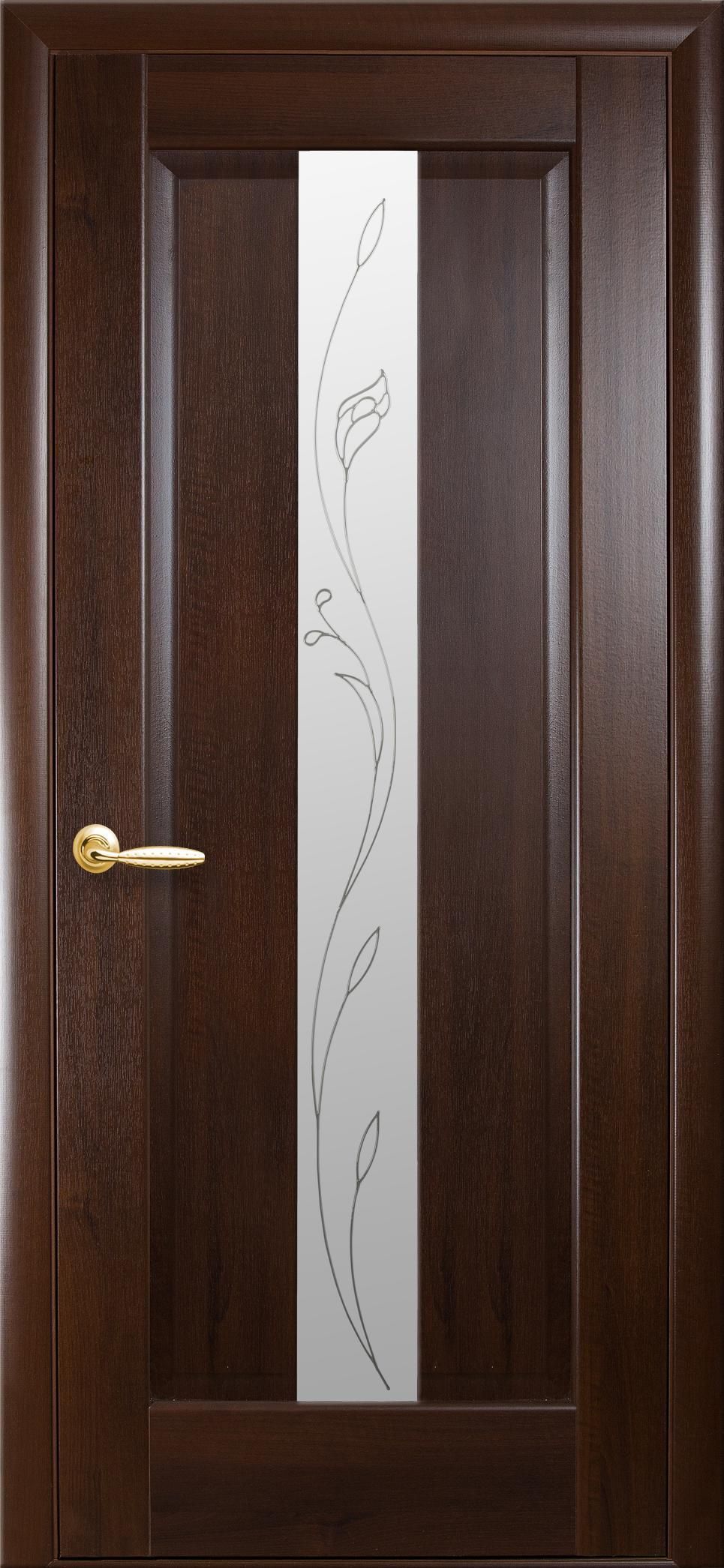 Межкомнатные двери Премьера со стеклом сатин и рисунком Р2 Каштан