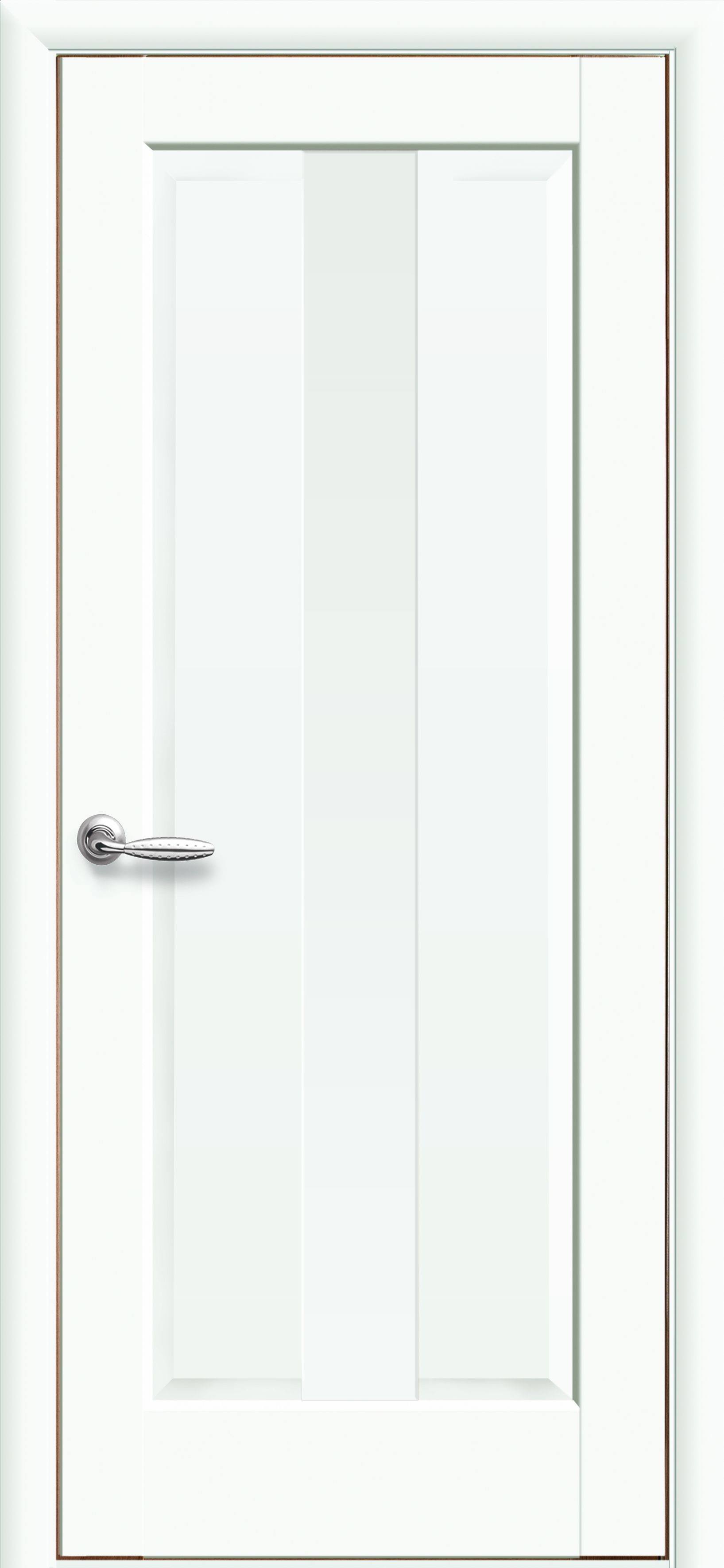 Межкомнатная дверь Премьера Новый стиль сочетает в себе неоклассический стиль и постмодерн. Полотно разделено на три части продолговатыми прямоугольниками. Две крайние части – одинаковые, расположенные на высшем уровне относительно средней части. Она как раз и представляет собой украшение полотна. Дверь Премьера может быть остекленной в этой части матовым или черным стеклом с рисунком или без. Есть модели с гравировкой и прозрачным контуром на стекле.