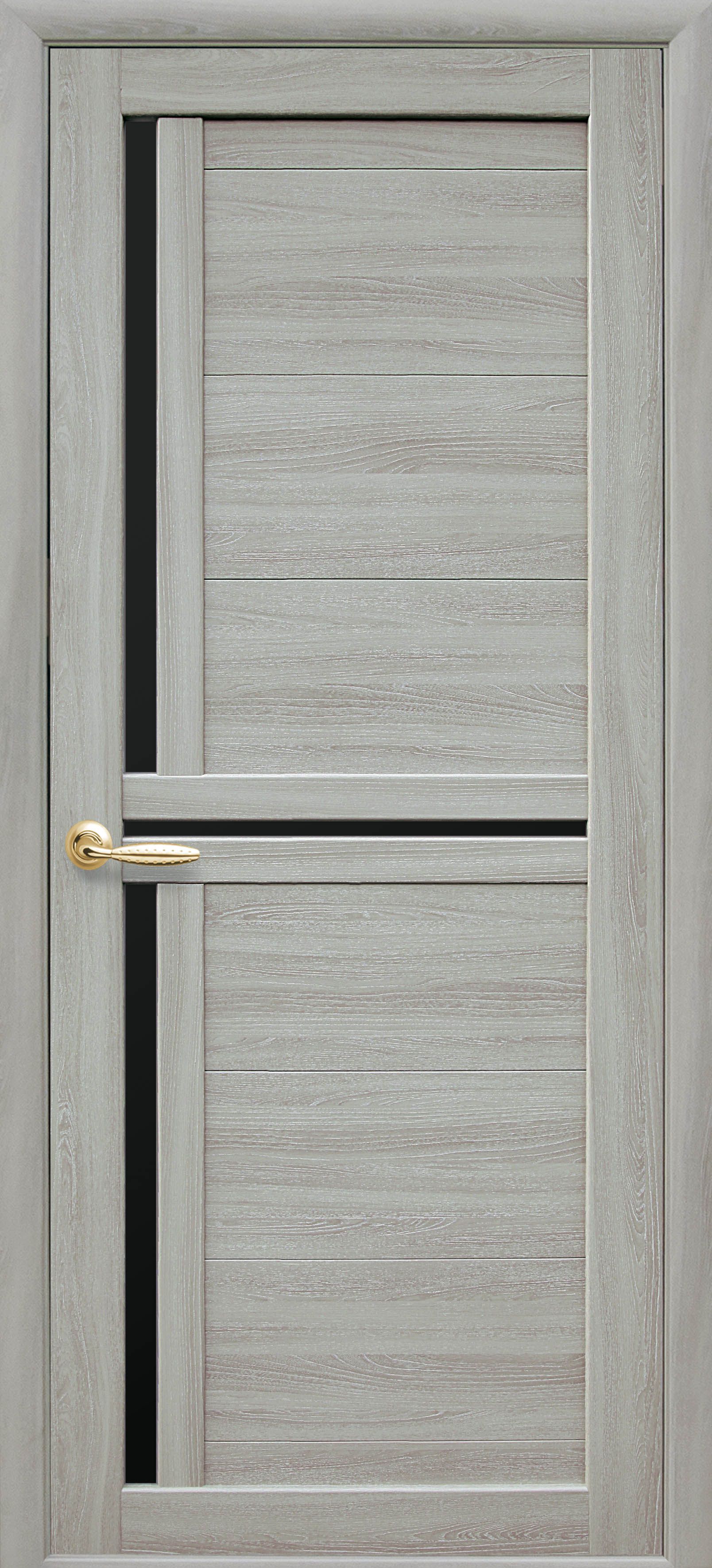 Межкомнатные двери Тринити с черным стеклом Ясень патина