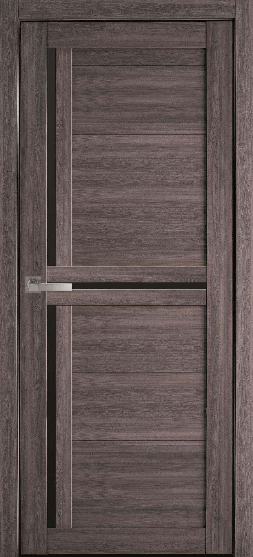 Межкомнатные двери Тринити с черным стеклом Дуб Атлант