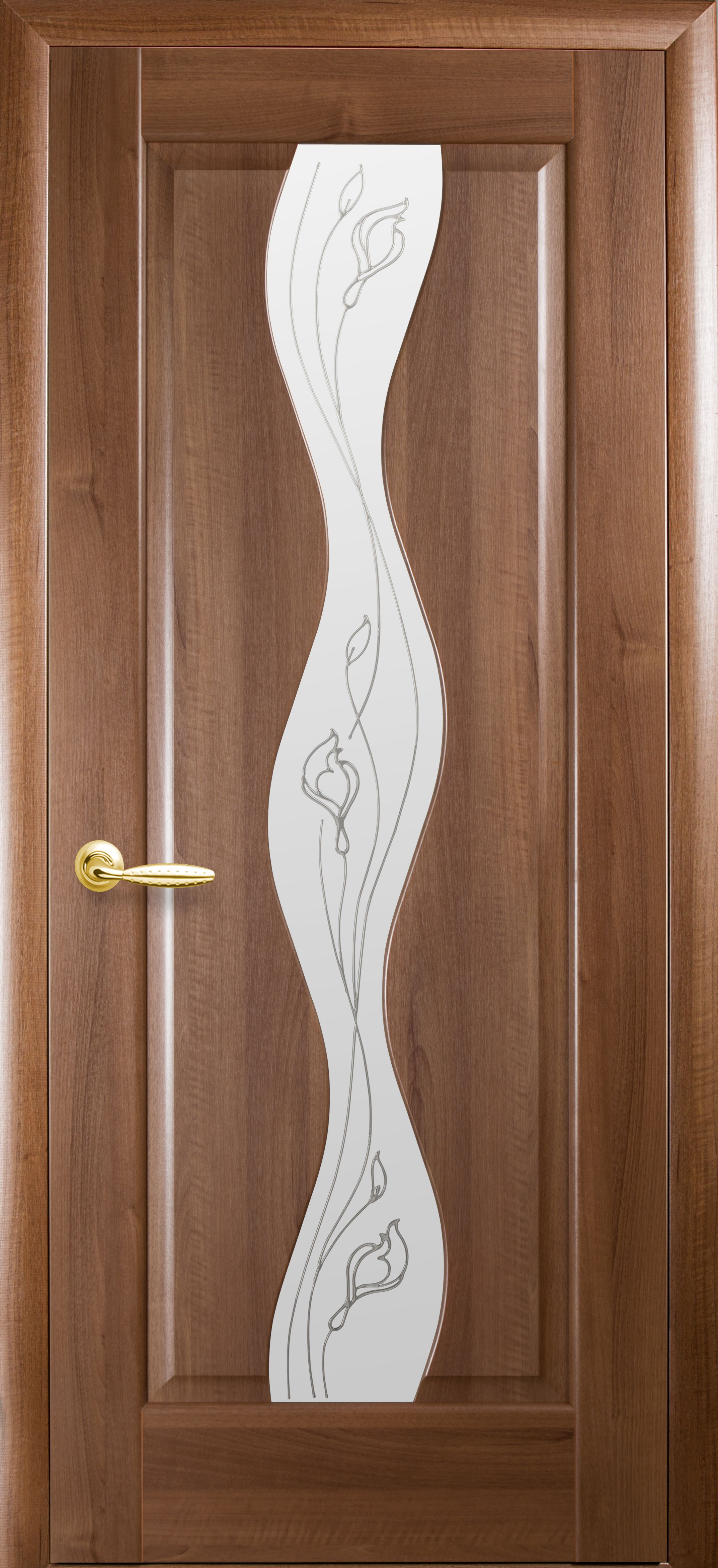 Межкомнатные двери Волна со стеклом сатин и рисунком Р2 Золотая ольха