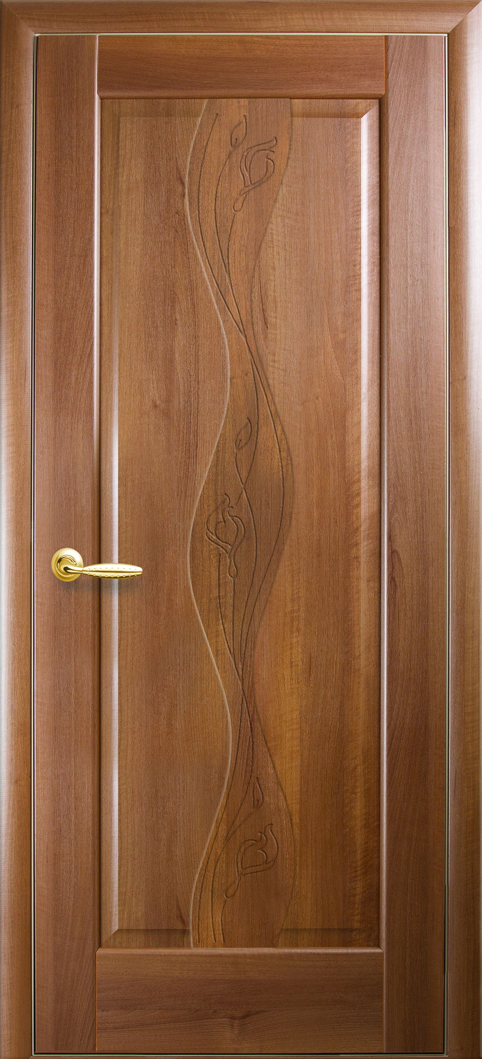 Межкомнатные двери Волна глухое с гравировкой Золотая ольха