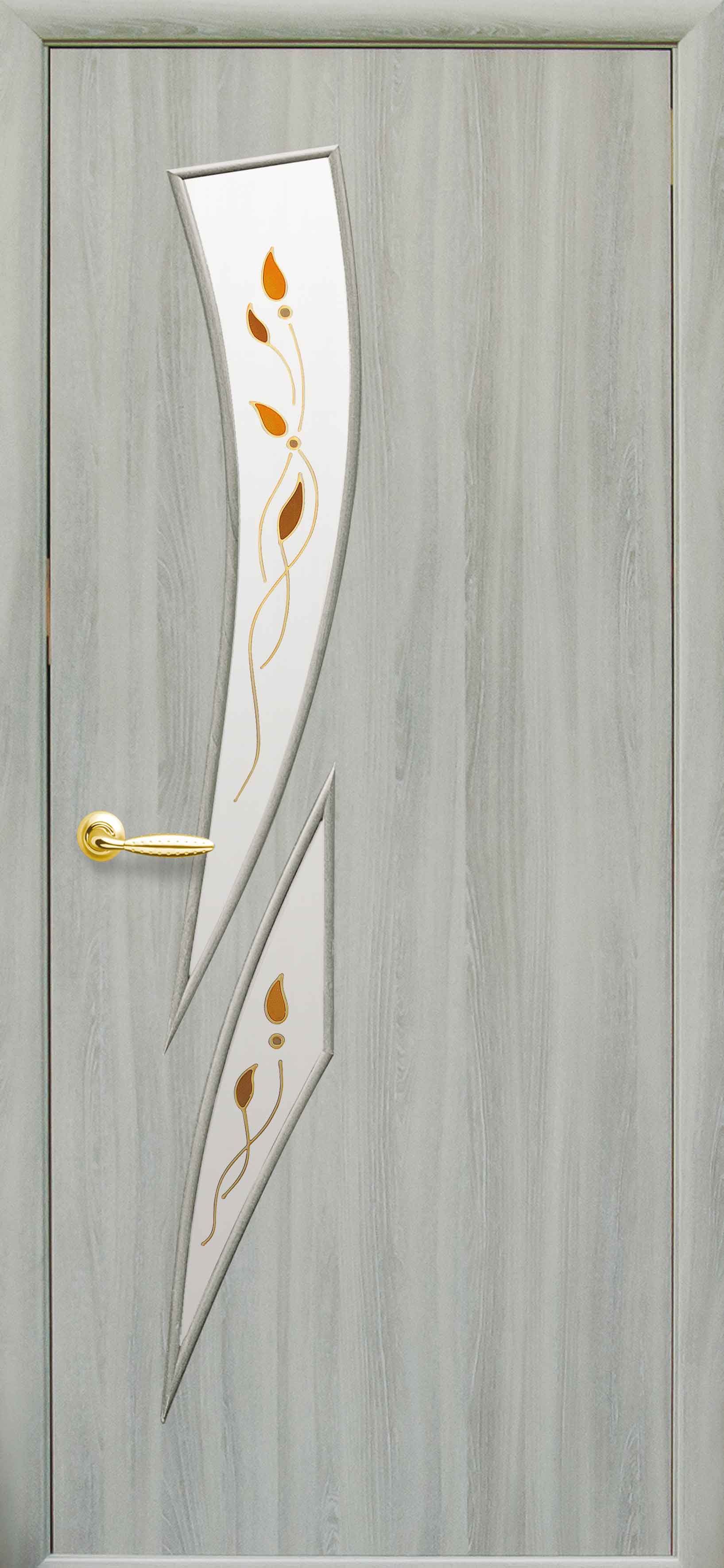 Міжкімнатні двері Камея зі склом сатин та малюнком kamea-37 Ясень патина